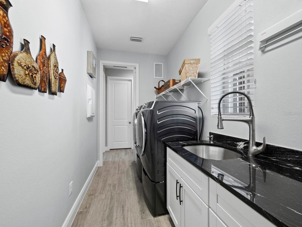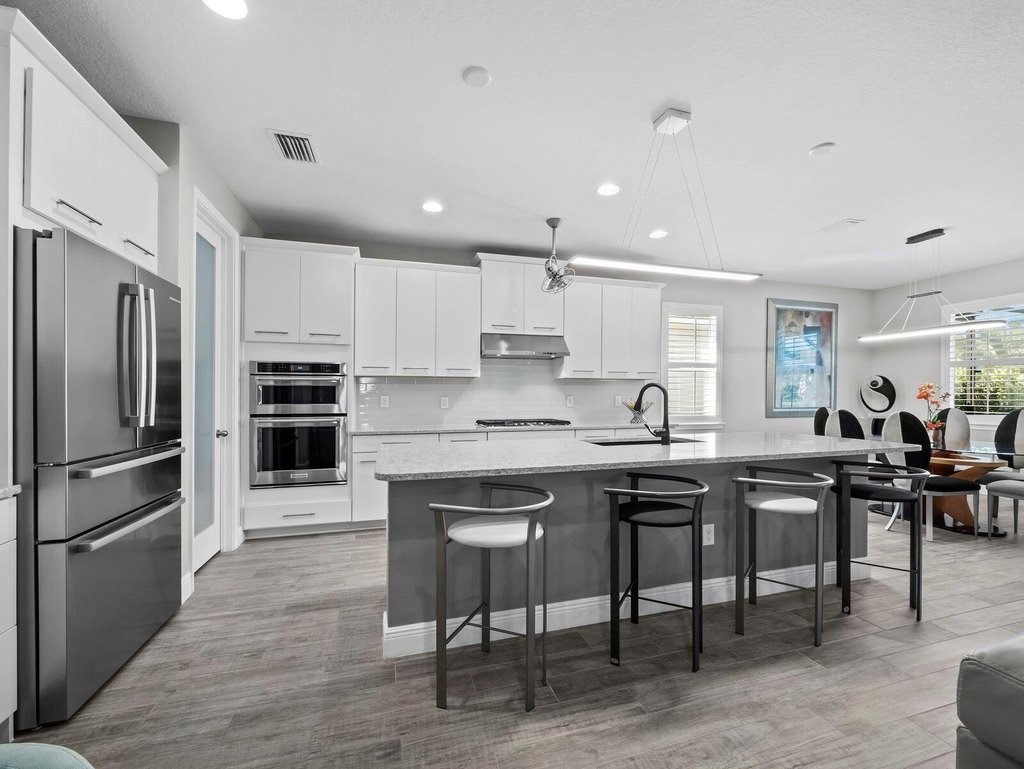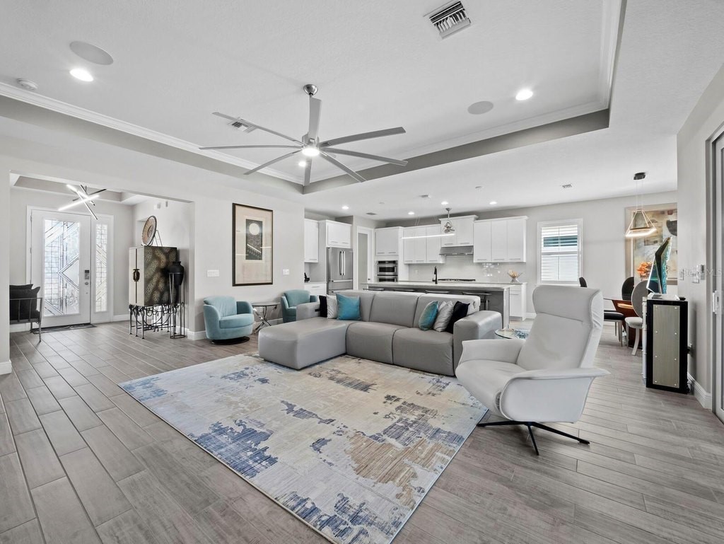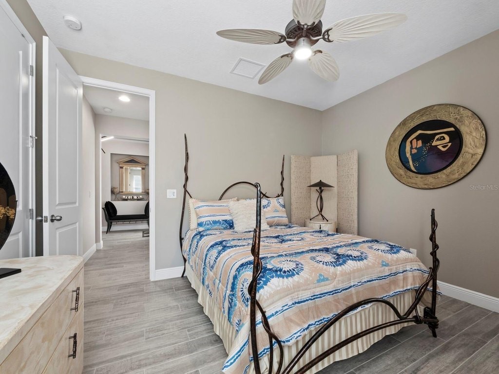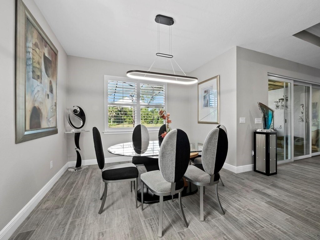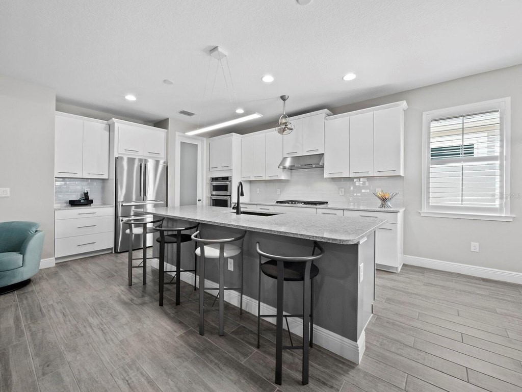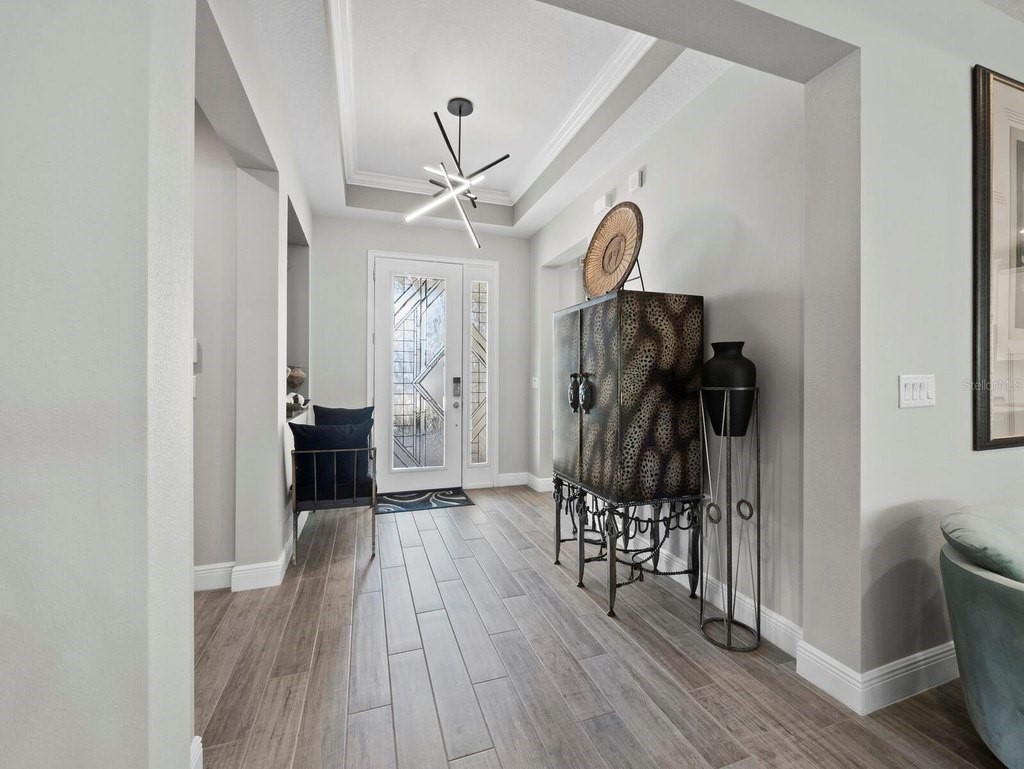 Under contract-accepting backup offers. Built in 2020, this West Indies-style home exudes sophistication with extensive upgrades and stunning natural light. Ideally situated on a lakefront home site, the property offers picturesque preserve and water views. Every high-end detail, meticulously completed in this gated Sunrise Preserve gem, offers immediate luxury upon arrival. The immaculate floor plan includes 2, 261 sq. ft. of thoughtfully designed living space, featuring 3 bedrooms, 3 bathrooms, a pool, and 3-car split garage with epoxy floors and upgraded paver driveway. Lush, tropical landscaping accented by hard wired LED lights provide impressive curb appeal. The welcoming front entrance sets the stage leading into the home with commanding views. Upon entering through the striking glass front door, the tone is set for the entire space. The large interior open layout features 9-10 ft ceilings paired with tray ceilings and crown molding, adding to the sense of spacious elegance. Plank tile floors flow throughout the home, complemented by tasteful designer touches such as upgraded light fixtures, plantation shutters, custom storage closets, and ceiling fans. Adjacent to the great room, a gourmet kitchen includes sleek cabinets, upgraded stainless steel appliances, and a generous walk-in pantry with a frosted glass door. Premium quartz countertops extend to a spacious island featuring an upgraded kitchen sink for both style and practicality. The dining room seamlessly blends entertaining with amazing outdoor views. The screened-in lanai enhanced with additional lighting, creates an appealing transition from the great room through the hurricane impact sliding door. Step outside to the custom saltwater pool complete with colored lights, fountain bubbler, motorize sunshade, and a one-sided automatic privacy screen. A pool lounge area atop pavers and a summer outdoor kitchen completes this idyllic space for relaxing while enjoying tranquil lake views. The spacious primary suite features a well-appointed bathroom, with a large walk-in custom closet. Highlights of this luxurious en-suite bath include split dual vanities, premium granite countertops, and large walk-in shower with a bench. The split floor plan provides two additional bedrooms with custom closets and spa-like baths. The third bedroom can easily transform into an office with the custom desk, adding versatility to the home. The spacious laundry room designed for convenience, offering a barn door with frosted glass, lower cabinets with a utility sink, and two storage closets. Further upgrades include impact windows, hard-wired security package with two cameras, split AC systems, whole house natural gas generator, house surge protector, a 5.1 surround sound system, and a freshly painted interior (2023). The HOA fee includes complete landscape maintenance. Situated in the Gated Sunrise Preserve at Palmer Ranch, residents enjoy an affluence of amenities that exemplify resort-style living. These include a large clubhouse with a fitness center, yoga room, a spectacular heated pool and spa, bar lounge area, bocce ball, tennis courts, and more. This community is conveniently located near fabulous Gulf beaches, shopping, fine dining, medical facilities, and top-rated schools, providing a truly upscale living experience.